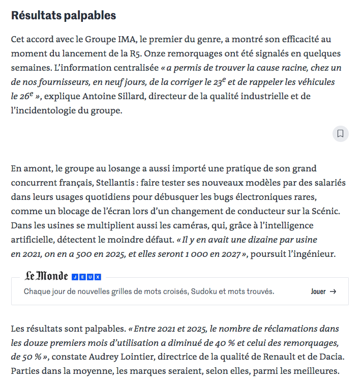 Bonjour, à l'achat de la Mégane en juin dernier (elle date de juillet 2022), mon mobile se connectait sans fil avec l'Android auto et j'étais fier comme si j'avais un bar tabac, le téléphone chauffant moins. Cependant, le bonheur n'aura duré que 15 jours, je suis maintenant obligé de la connecter via un câble. Je pensais que c'était mon appareil (A32 avec Android 13), mais, cela a fait exactement le même coup à ceux de ma femme et de ma fille pourtant beaucoup plus récents... Des idées et conseils? Merci et bonne journée!