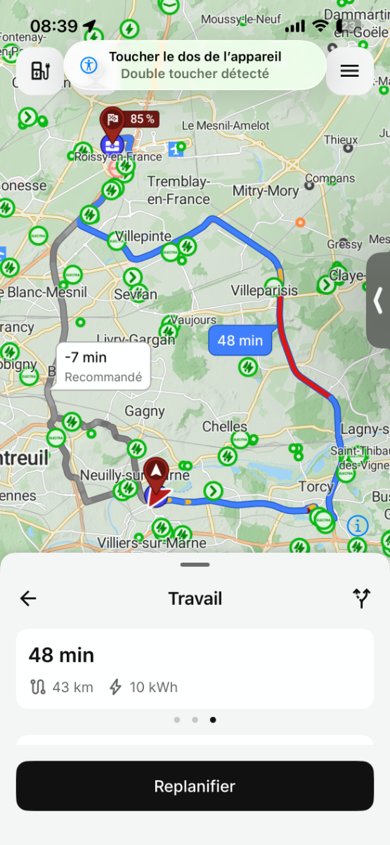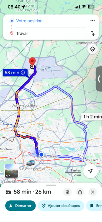 Bonjour à Vous, J'ai pris l'abonement ABRP car ca semble etre plus que necessaire des qu'il y a long trajet (en tt cas sur mon e5008) Je pense avoir lu sur leur site que le traffic est pris en compte et il semble bien vu les couleurs mais le temps de trajet est completement a l'ouest ! Du coup comment faites vous et comment avoir qqch de fiable en temps et charge ? MErci par ex: difference entre Maps et ABRP (58min fiable sur MAPS vs 41min ABRP) -