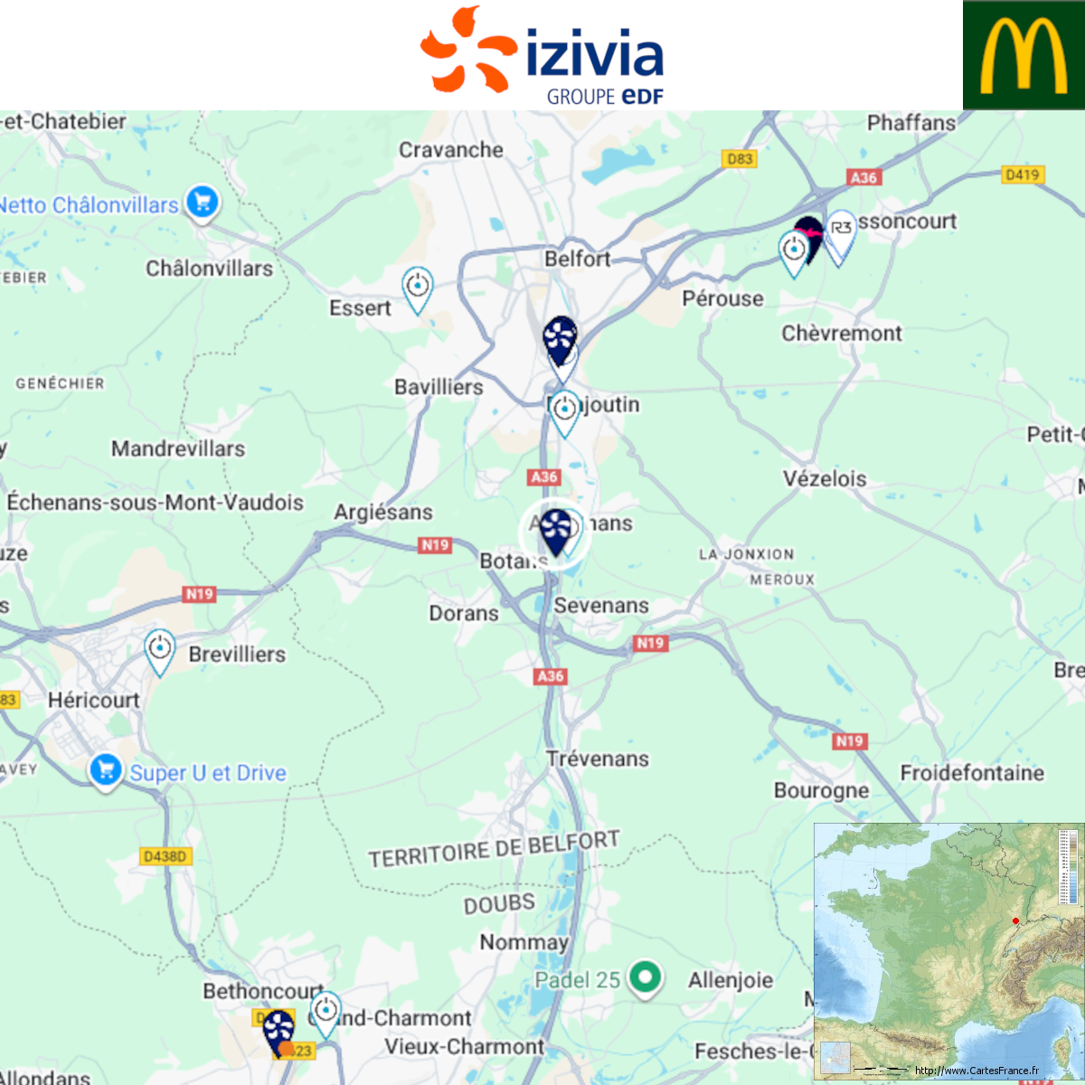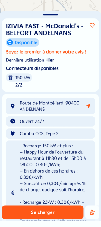 Ouverture d'une station Izivia à Andelnans (McDonald's). 2x 150kW CCS Comme d'habitude, retrouvez le lien vers ma carte : https://tinyurl.com/StationsVE Toute l'actu des stations de recharge sur le groupe FB : https://tinyurl.com/GroupeFacebookVE -