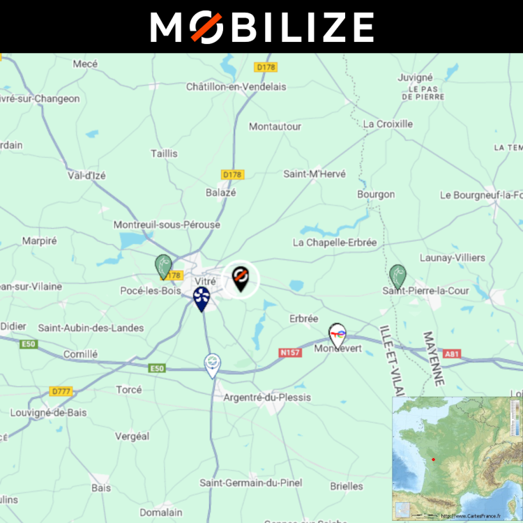 Ouverture d'une station Mobilize à Vitré (Renault). 4x 320kW CCS Comme d'habitude, retrouvez le lien vers ma carte : https://tinyurl.com/StationsVE Toute l'actu des stations de recharge sur le groupe FB : https://tinyurl.com/GroupeFacebookVE -