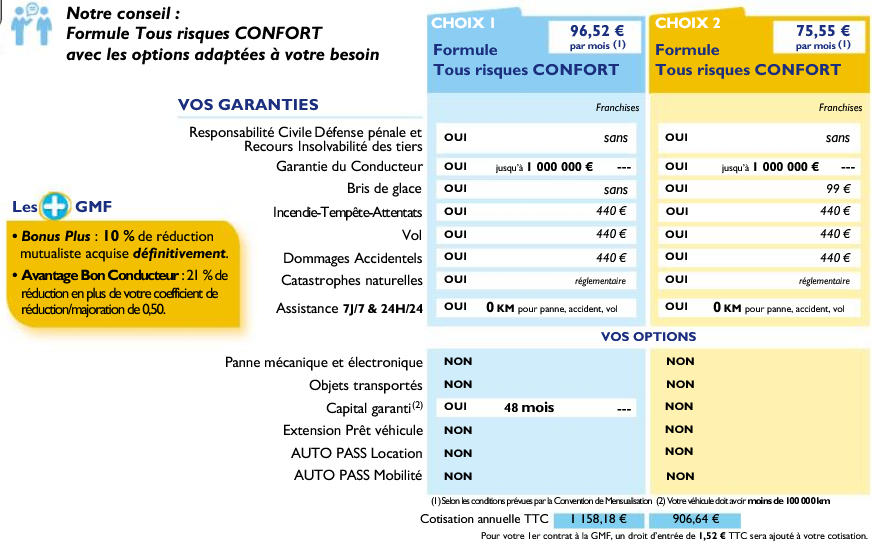 Tu pourrais me donner les caractéristiques de ton contrat ? Je viens d'avoir quelqu'un de GMF, il me sort 906,54€