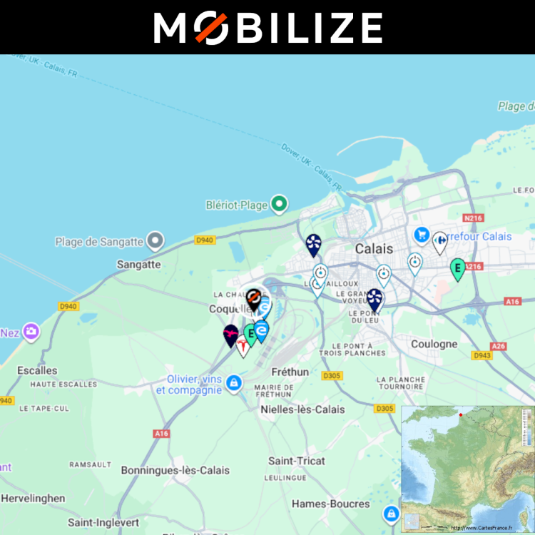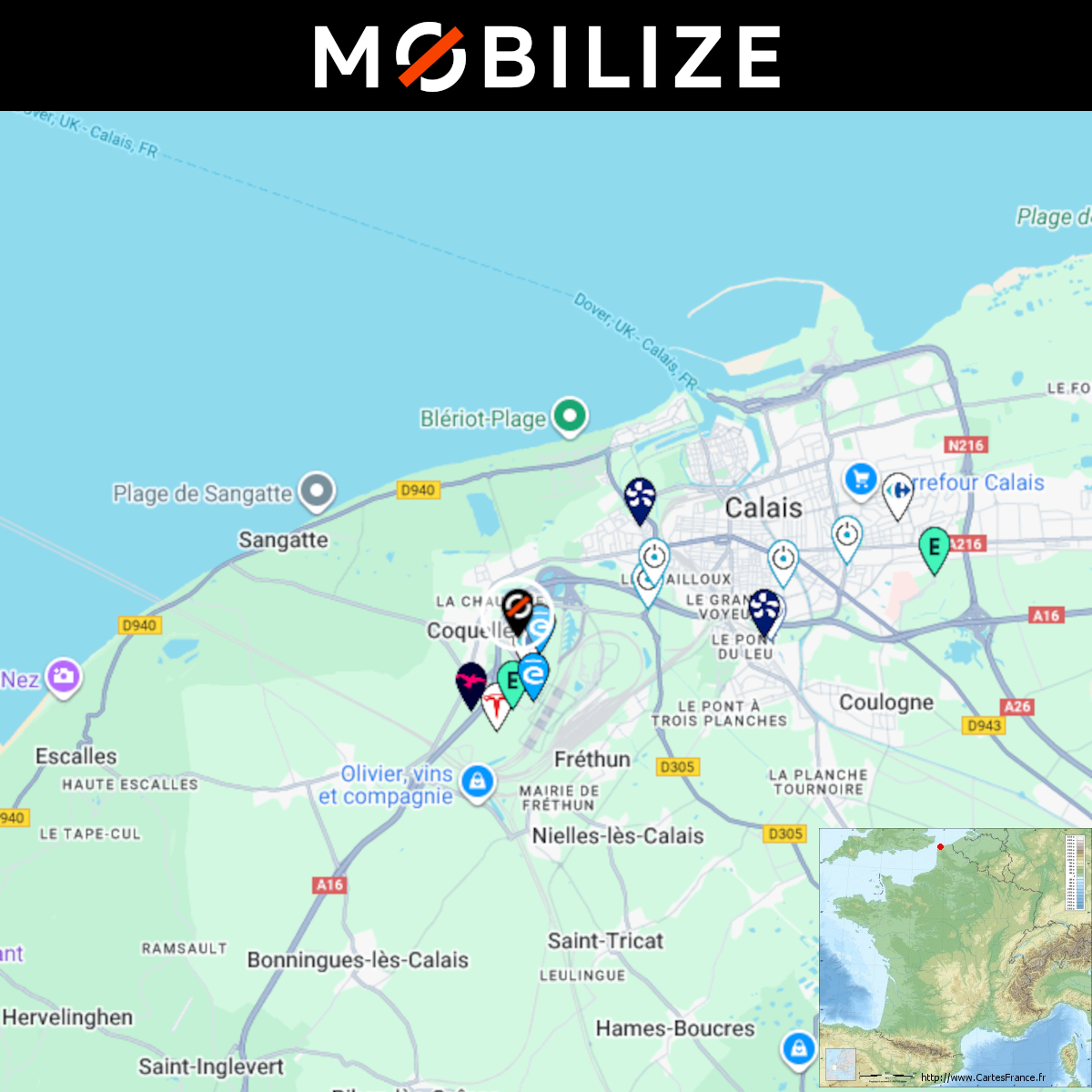 Ouverture d'une station Mobilize à Coquelles (Renault). 6x 320kW CCS Comme d'habitude, retrouvez le lien vers ma carte : https://tinyurl.com/StationsVE Toute l'actu des stations de recharge sur le groupe FB : https://tinyurl.com/GroupeFacebookVE -