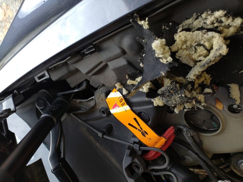 Ici c'est la guerre. Les souris ont réussi a manger toutes les miettes sans tomber dans le seau et j'ai trouvé sous le verrin droit du frunk un amas de morceaux de mousse. J'ai tout démonté pour aspirer tout ça. J'espère qu'elles vont abandonner le coin.