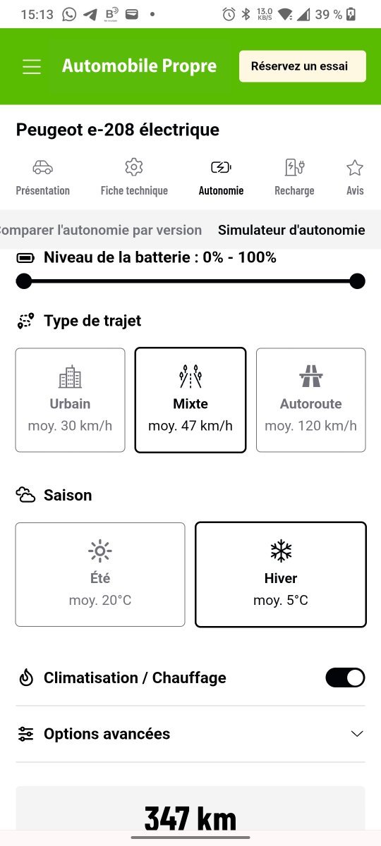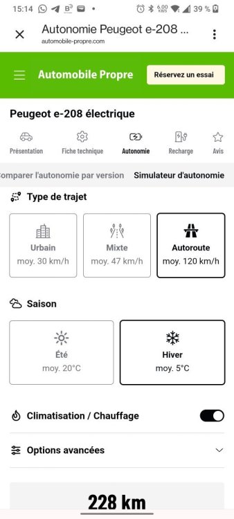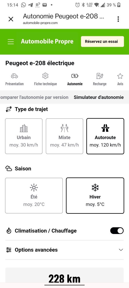 Je trouve le simulateur très optimiste de 0 à 100 % si c'est mixte ou si c'est autoroute, j'ai plutôt 224 km en mixte. -