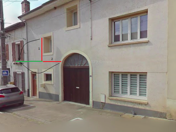 Bonjour, il existes quelques solutions mais c'est la mairie qui pourra confirmer quelles solutions sont acceptées. Le plus simple est le tapis de sol mais pas sûr que ce soit accepter car ça n'empêche pas forcément une chute. Outre le tapis, il y a le principe de goulotte plus ou moins équivalent. Quelques liens pris au hasard pour illustration - pas forcément disponible en France. - Tapis de protection de câble - Cdiscount - Tapis de protection de câble extérieur pour trottoir Energizer pour la recharge de véhicules électriques ou de loisirs EN0184 | RONA - Tapis pour câbles de charge / Protecteur de câble en caoutchouc - Largeur 40 cm - Par mètre linéaire Certaines communes Belge autorise les tapis ou un système de goulottes encastrées dans les trottoirs. - Inédit en Wallonie : La Hulpe autorise la pose de tapis de protection pour les câbles de recharge électrique sur ses trottoirs - La DH/Les Sports+ Des articles qui citent les tapis, les goulottes ou les portiques. - Les solutions pour recharger une voiture électriqu... | Gocar.be - Solutions en vue pour les câbles de recharge des véhicules électriques des #particuliers en rue Le système de portique est pas mal non plus, il existe des portiques spécifiques aux chargeur mais un système artisanal peut très bien faire l'affaire, attention qu'il soit assez haut pour ne pas gêner le passage des piétons et arriver au niveau de la prise de charge du véhicule; le système doit aussi être suffisamment rigide pour ne pas risquer de se déplacer au moindre coup de vent. On pourrait par exemple envisager un système fixé au mur qu'on peut abaisser depuis la fenêtre (cas 1) ou faire pivoter (cas 2) pour atteindre l'emplacement de parking en passant au dessus du trottoir. Esthétiquement, le tapis est quand même mieux 😇 -