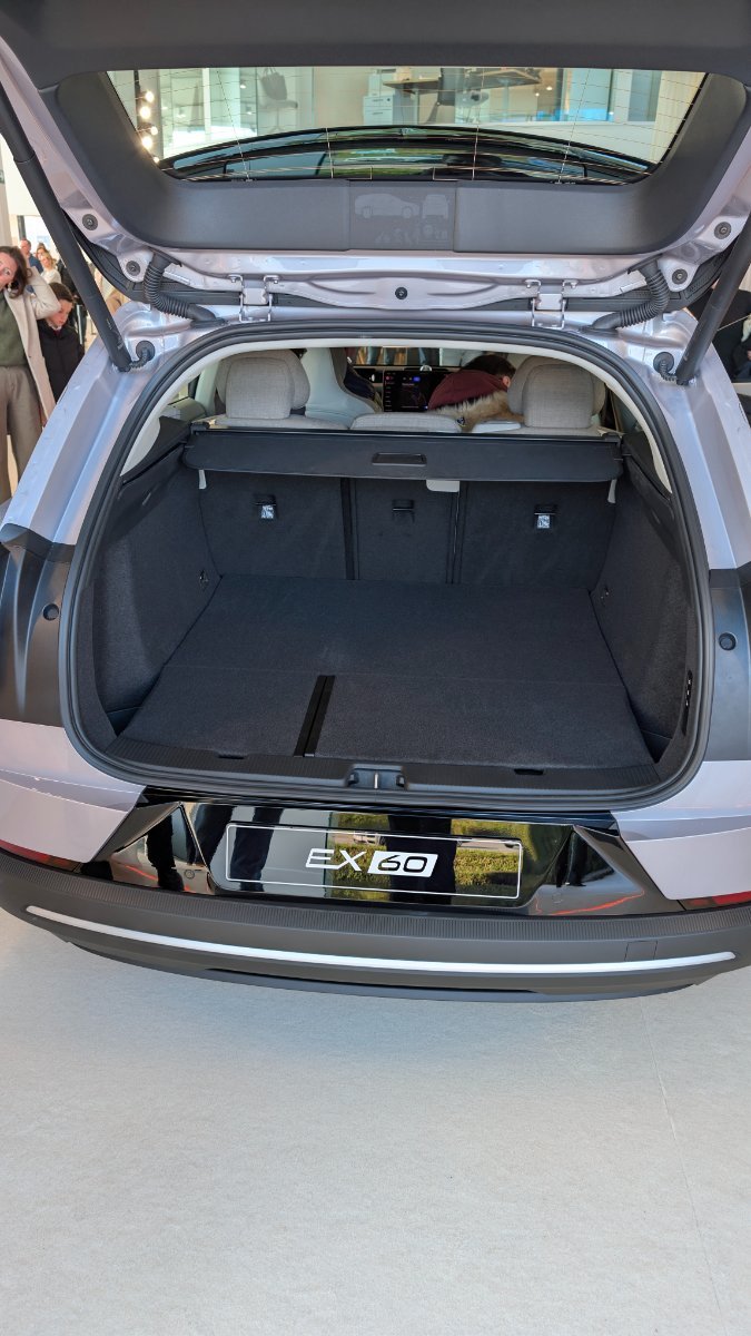 Hello, J'ai vu l'EX60 en concession, il est beau, quelle claque ! J'avais vu l'iX3 quelques jours avant, et franchement, le Volvo fait plus premium et classe, tant extérieurement qu'intérieurement. Les matériaux sont de meilleure qualité. Pour la couleur extérieure, je ne suis pas fan du gris en général, mais là, je dois dire que la couleur très grise « pailletée » lui va très bien. J'hésite même à prendre ça au lieu du Bleu Denim ^^ J'ai encore quelques jours avant mon rendez-vous pour me décider L'écran central est nettement moins omniprésent que celui de l'iX3, que j'avais trouvé trop intrusif. Là, c'est tout juste ce qu'il faut, et il est très réactif. Le coffre et le frunk sont grands et très pratiques. Je suis clairement convaincu, c'est une belle voiture ! Les quelques photos : La monte des pneus : Toutes les couleurs disponibles : Le vert sur un XC60 pour ceux qui veulent le voir en vrai : Le Bleu Denim :