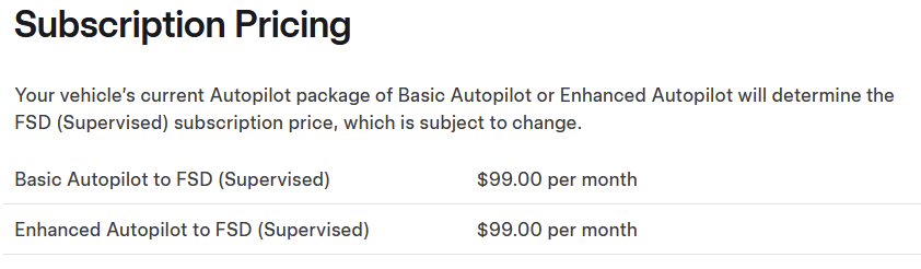 Aux US, l'abonnement mensuel est de 99$ par mois. Donc, ça sera 99€ en Europe si pas acheté l'option FSD. https://www.tesla.com/support/full-self-driving-subscriptions Bien pratique pour un usage pour certaines occasions comme des vacances.