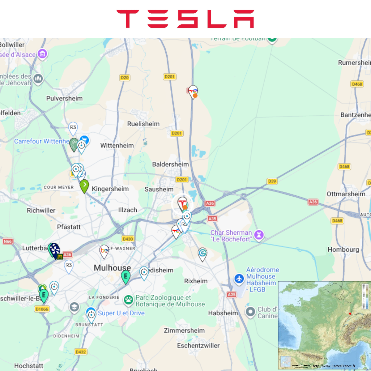 Construction d'une station Tesla à Mulhouse (Kyriad). Remplacera le SUC qui vient de fermer à quelques mètres Photo d'Olivia68 ! Comme d'habitude, retrouvez le lien vers ma carte : https://tinyurl.com/StationsVE Toute l'actu des stations de recharge sur le groupe FB : https://tinyurl.com/GroupeFacebookVE