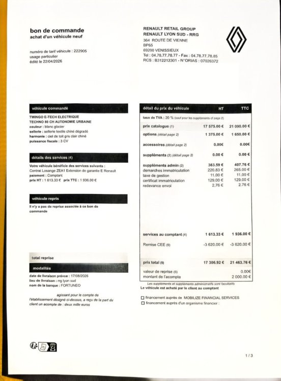 Salut, extension à 5 ans de la partie connectée, pneus 4 saisons, combo ccs et détection angle mort, détection en marche arrière.... Euh oui j'ai droit au minimum (enfin j'espère.... tu me fais peur ) Oui il a de la chance, son frère aussi qui a 26ans et qui c'est décidé de passer le permis en même temps, lui se sera une Dacia Sandero 65cv (il vit seul, donc CG à son nom et assurance plein pot....) -