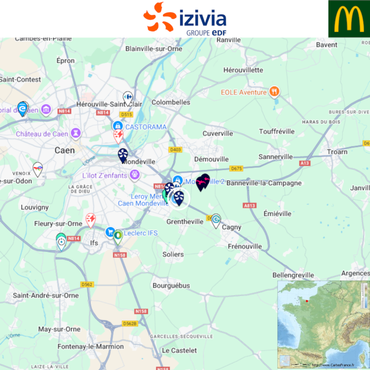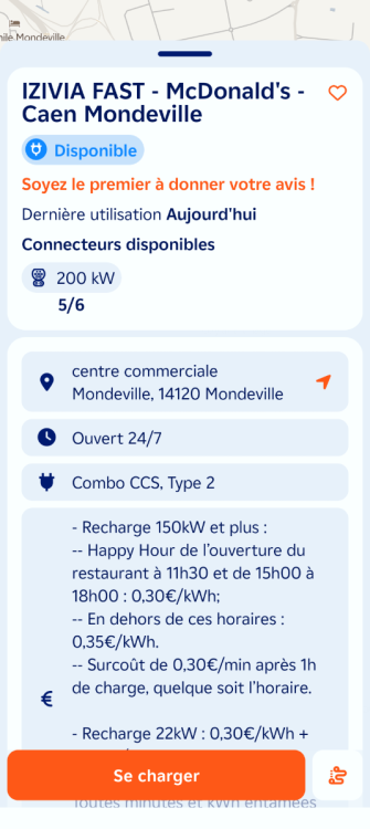 Ouverture d'une station Izivia à Mondeville (McDonald's). 6x 200kW CCS Comme d'habitude, retrouvez le lien vers ma carte : https://tinyurl.com/StationsVE Toute l'actu des stations de recharge sur le groupe FB : https://tinyurl.com/GroupeFacebookVE -