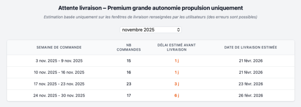 Bonjour à tous, Pour info l'ex fichier excel de suivi a été rentré dans l'application ! On a donc maintenant une visu assez globale des livraisons à venir Que pensez-vous de rajouter un compteur disant que suivant le suivi de la communauté, il y a X commandes faites avant la votre ? Ou par votre expérience la date à laquelle on a commandé n'a pas vraiment de sens sur l'ordre de livraison réel ?