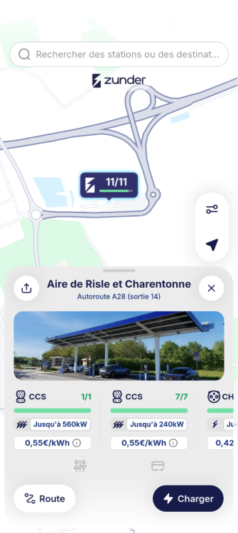 Ouverture d'une station Zunder sur l'A28 (Aire de Risle et Charentonne). 1x 560kW CCS 7x 240kW CCS 1x 50kW CHAdeMO Comme d'habitude, retrouvez le lien vers ma carte : https://tinyurl.com/StationsVE Toute l'actu des stations de recharge sur le groupe FB : https://tinyurl.com/GroupeFacebookVE -