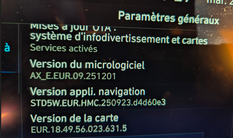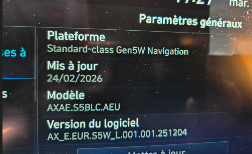A propos de la mise à jour du système info divertissement 02/2026 Contrairement à ce qui à été souvent dit ,tout à été remis à jour : version logiciel ,micro logiciel ,appli navigation ,version carte : Au hasard : apparaissait grisé avant ,maintenant : A vérifier ...... -