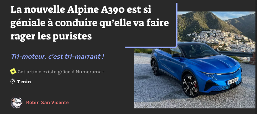 Si l'objectif est d'en vendre 500 alors ce sera un succès, à coup sur ... Avoue que les signaux ne sont pas hyper positifs. Ce n'est pas que de la faute d'Alpine, je n'ai aucun exemple en tête d'une marque "sportive" qui vende ses VE avec succès. Maserati, Lotus, Abarth ... ce sont tous des flops. Le marché n'existe tout simplement pas