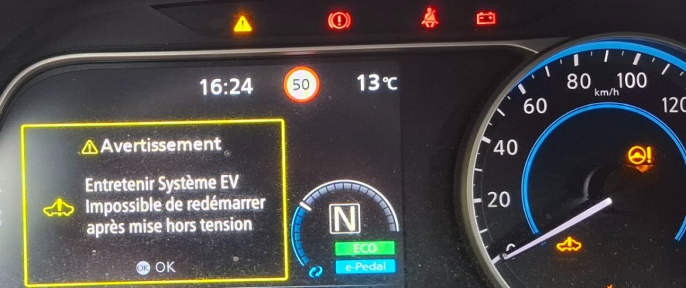 La mienne est hs... 11.5v ... J'ai un message "Alerte Ev la voiture ne redemarrera pas après extinction... " C'est rassurant... Je vais changer la batterie 12v. J'espère que ca va marcher, car impossible de recharger, impossible de passer en marche arrière et avant ...