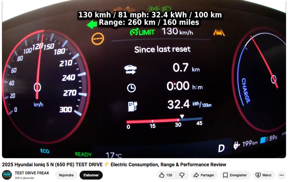 Tu t'en donnes du mal avec tes caractères gras... Rien de nouveau sous le soleil côté conso. Pour relativiser, conso à 130km/h d'une Ioniq 5 N :