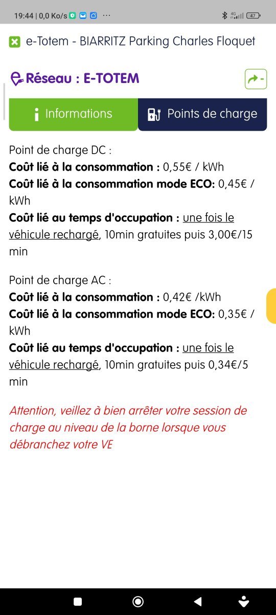 Totalement d'accord avec toi @New2EV Ici, à Biarritz, c'est le réseau e-totem qui a colonisé la ville, avec des tarifs justifiant leur très grande disponibilité...🤣 AC=0.42€ DC=0.55€ ! -
