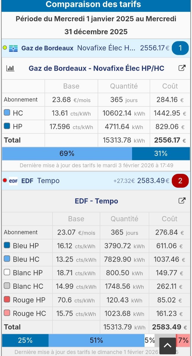 Le plus simple c'est de s'inscrire sur capfile t'auras le comparatif avec ta conso réelle, ça dépend vraiment des usages De mon côté passé chez gaz de Bordeaux, gain de 30€ par rapport à tempo mais plus de question de jour rouge (t'as 20€ de parrainage à la souscription en plus) -