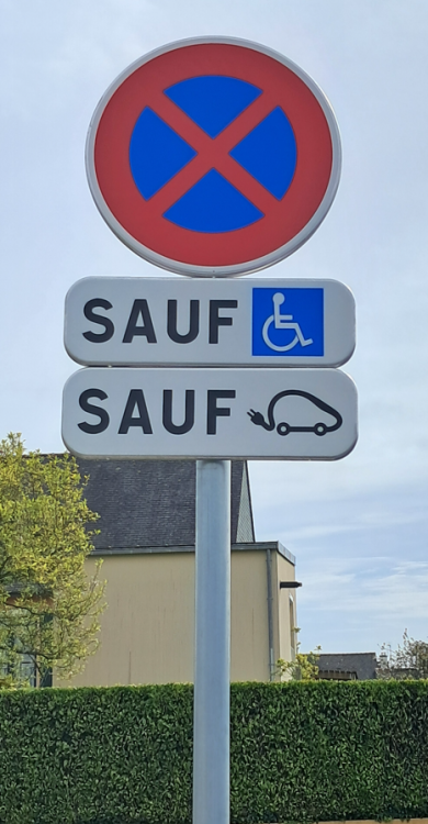 😄 Oui C'est un "ou" non exclusif bien sûr ! On accepte les handicapés en voiture électrique ! Il y a une borne en dessous ? Les anti-ve y verront sans doute un double affichage inutile... -