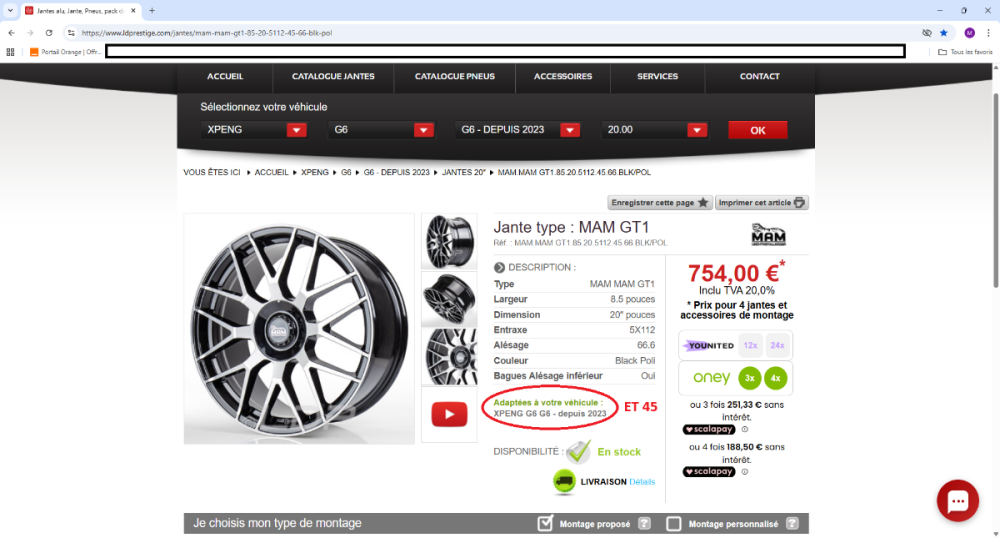 Jantes aux dimensions G6 et dispo pour ET45. Il est possible de les recevoir en packs à poser avec le choix des pneus. J'ai opté pour Michelin alpin 5 mais pas SUV car la charge est la même 105 avec flans renforcés et l'indice "V" homologué. 754 € pour 4 jantes et 1200€ pour les pneus avec valves calibrées.