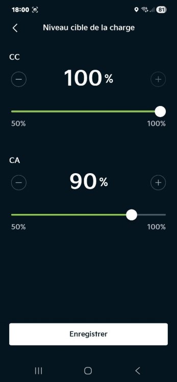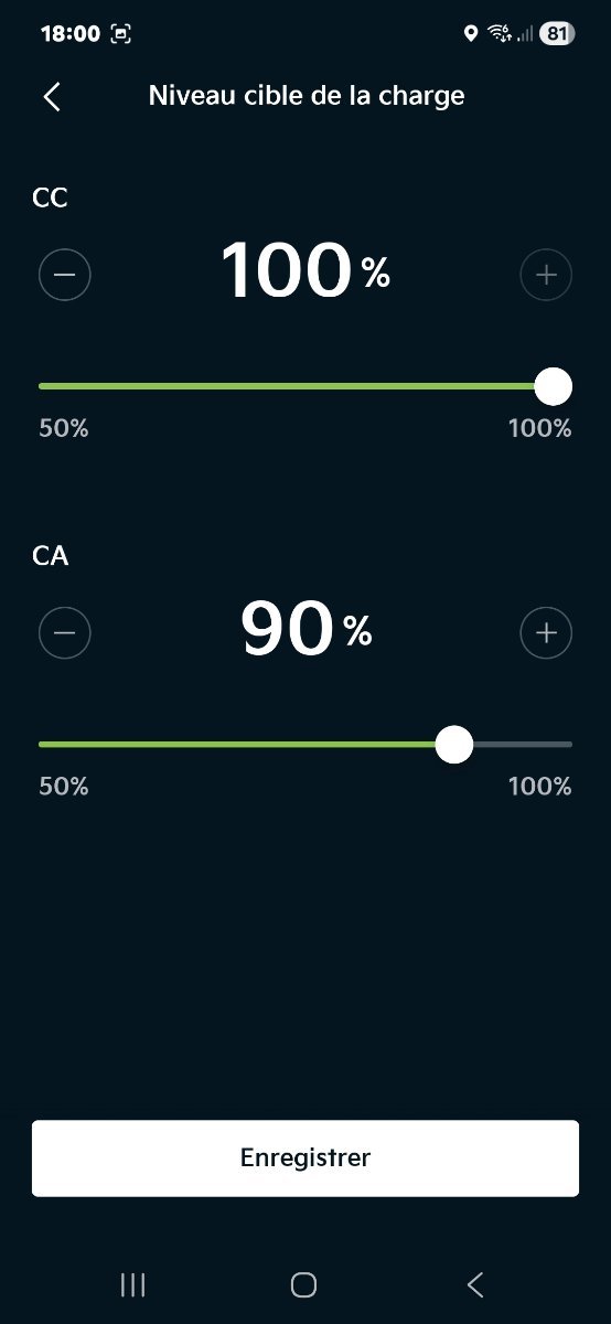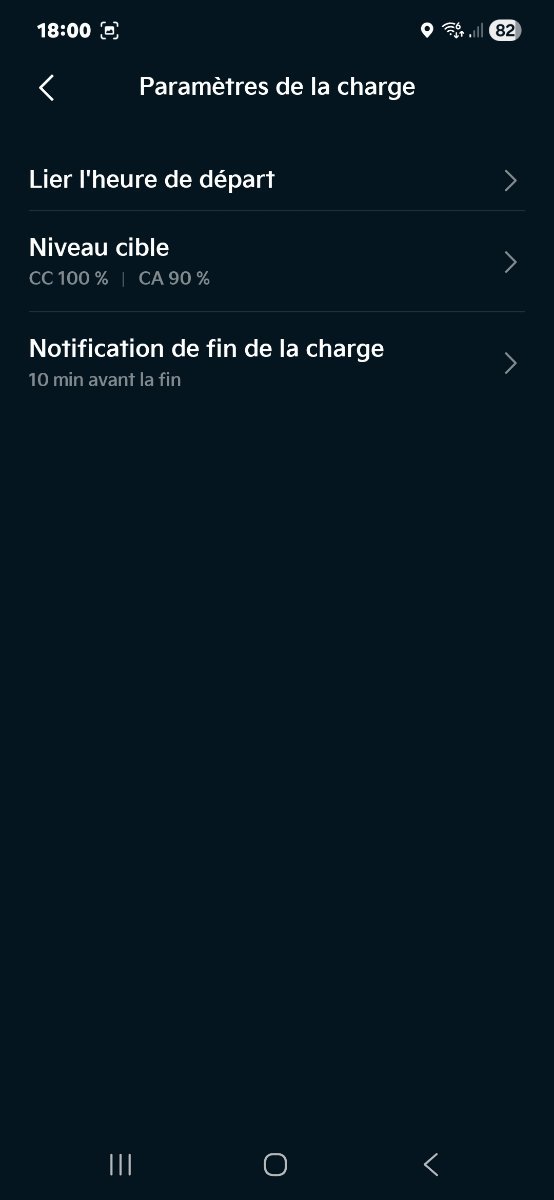 Un autre problème que j'ai constaté, c'est qu'on ne peut pas mettre à jour l'état de charge de la batterie. Il n'y a aucun menu pour ça, contrairement à l'ancienne appli.