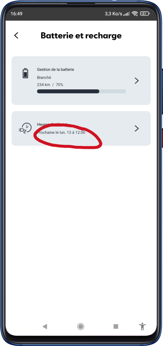 19. Bonjour à tous j’ai été obligé d’abandonner Bluelink pour My Hyundai. Depuis les recharges de ma Ioniq5 ne sont plus déclenchées aux heures creuses. Pourtant la programmation est bien affichée sur mon tableau de bord (ex dimanche 22:00). Aucune notification sur mon téléphone et lorsque je consulte l’application, je constate que la charge n’a pas démarré ! je n’ai jamais eu ce phénomène svec Bluelink qui affichait “câble branché”, et “charge programmée” je fais une autre tentative ce soir. Merci pour vos commentaires