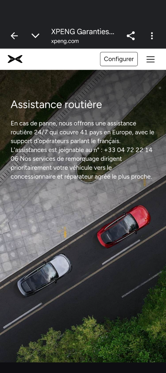 Tu as l'assistance routière xpeng pendant 5 ans, tu peux les appeler pour plus de détails et demander un écrit.
