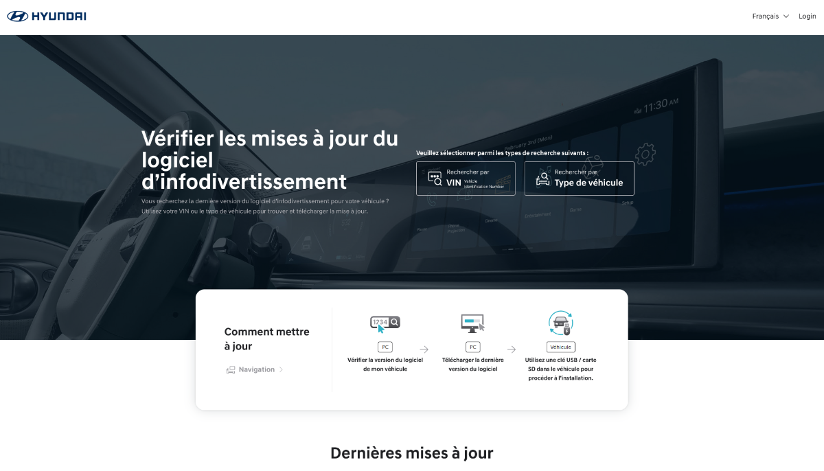 Le site officiel de mise à jour a été... mis à jour https://update.hyundai.com/EU/FR/home On peut maintenant se connecter avec son compte Hyundai et voir la version à télécharger correspondant à sa voiture (avec le VIN). Dommage ça ne vérifie pas si la version installée sur la voiture est la dernière ou pas.- 2 998 réponses