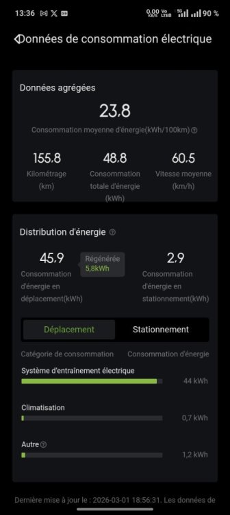 Bonjour, Est-ce que quelqu'un a trouvé comment était calculée la conso moyenne sur un trajet. Je pige pas comment ils arrivent à 23.8 dans mon cas