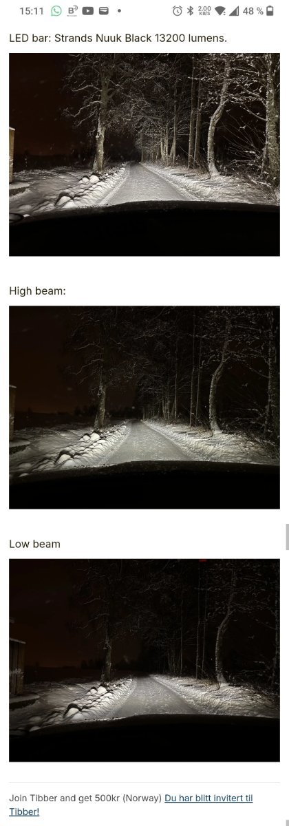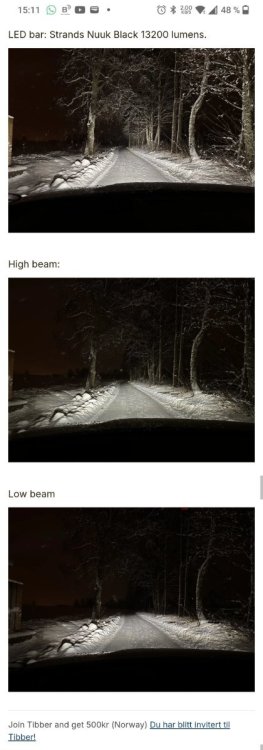 Ça rajoute une épaisseur quand-même, faut aimer. D'ailleurs le type le dit mais préfère l'ajout de lumière à l'esthétique car il est dans un pays nordiques avec beaucoup plus de pénombre que de jour. Mais la photo comparatif avec le plein phare les feux de croisement et le lait de rajouter on voit bien la différence, peut-être un peu amplifié car il y a de la neige.