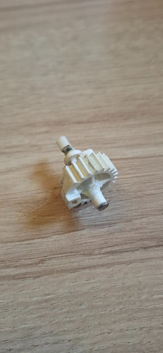 J'ai démonté le mécanisme (environ 10minutes pour avoir le boîtier et un peu de patience pour l'ouverture.) Meme constat le pignon principal Hs et le secondaire avec 1 dents hs. J'ai percé l'axe et ajouté un clou puis colle. Remontage et remise en service. Ce n'est pas hyper propre mais le bruit a complètement disparu ! J'avais un devi a plus de 1000€... J'ai commandé les 2 pièces pour 25€ mais toujours pas reçu. -