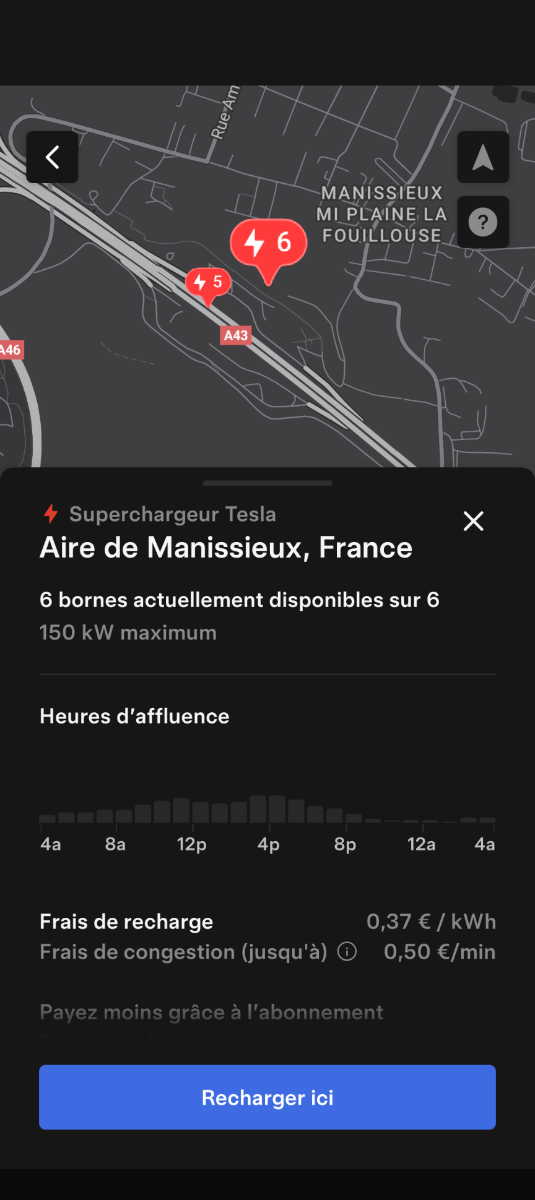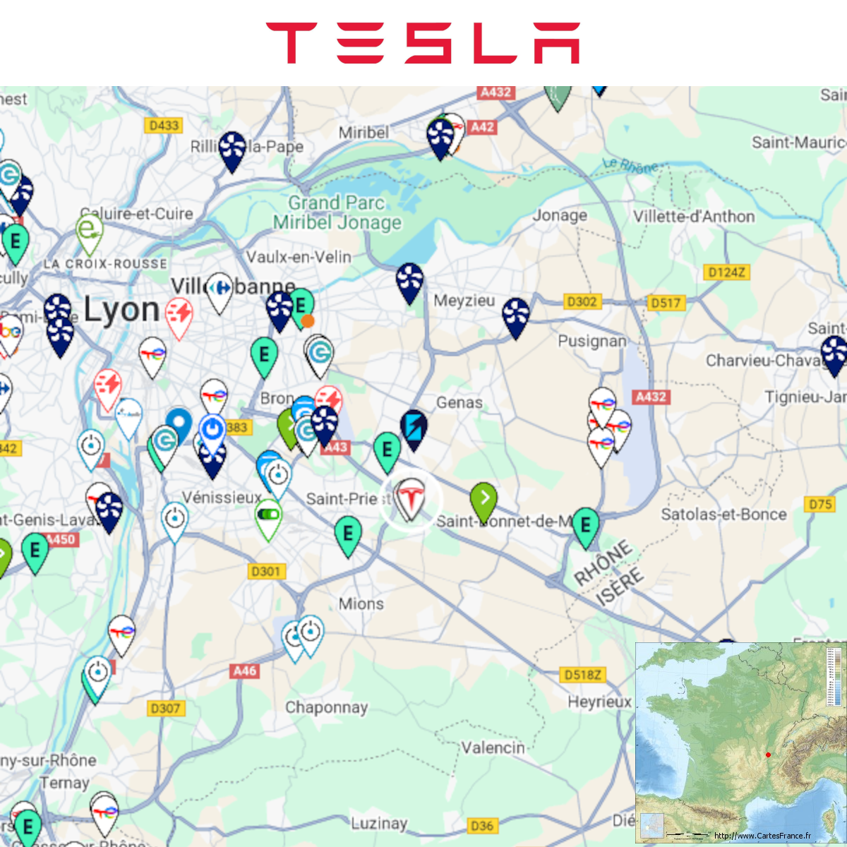 Ouverture d'un 'ancien' SUC Tesla sur l'A43 - Aire de Manissieux. Prix sans abonnement/non Tesla sur la capture Comme d'habitude, retrouvez le lien vers ma carte : https://tinyurl.com/StationsVE Toute l'actu des stations de recharge sur le groupe FB : https://tinyurl.com/GroupeFacebookVE