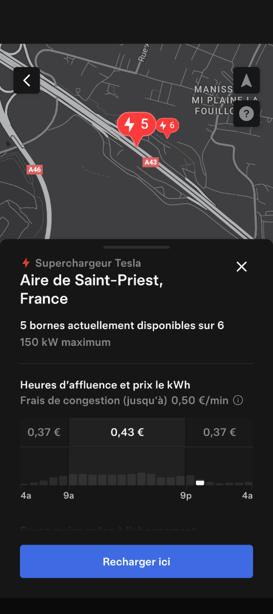Ouverture d'un 'ancien' SUC Tesla sur l'A43 - Aire de Saint-Priest. Prix sans abonnement/non Tesla sur la capture Comme d'habitude, retrouvez le lien vers ma carte : https://tinyurl.com/StationsVE Toute l'actu des stations de recharge sur le groupe FB : https://tinyurl.com/GroupeFacebookVE