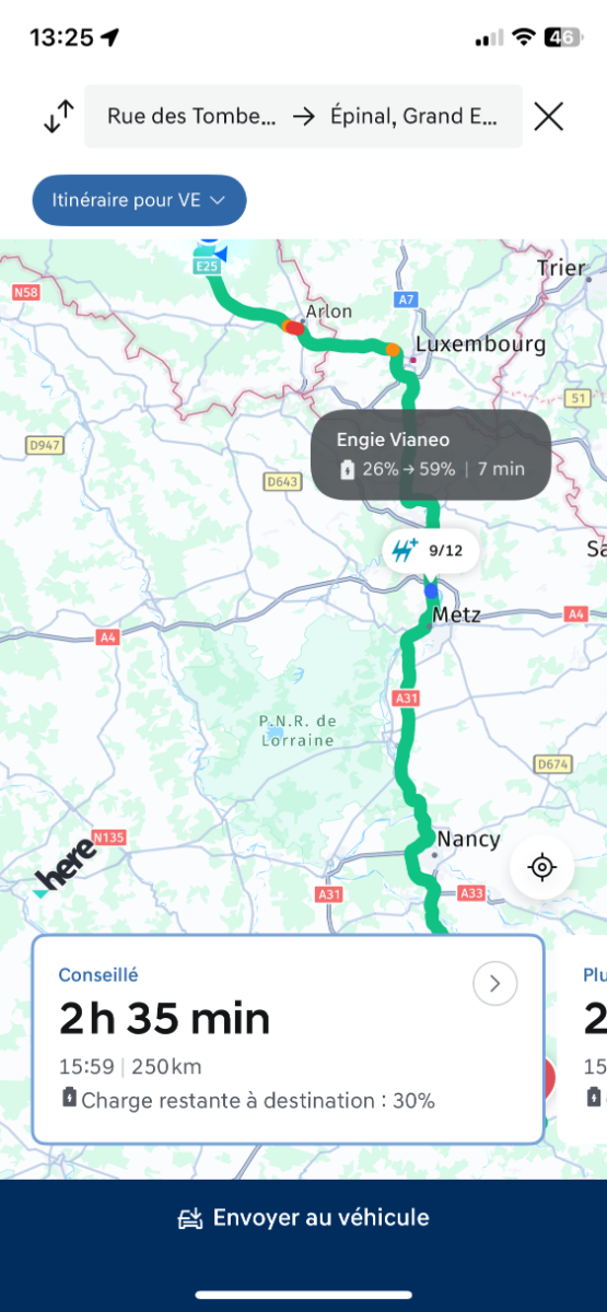 Pour avoir effectué 10 aller-retour de 800km dont 700 sur autoroute, en Q90, c'est faisable mais: je précise que c'est en solo vitesse entre 110 et 120km/h sur autoroute une autonomie de 150km entre deux stations de charge sur autoroute 2 trajets se sont terminés en taxi/dépanneuse: une panne batterie 12V et une panne sur un contacteur 2 trajets avec un arrêt planifié à l'hôtel 2 trajets avec un arrêt non planifié à l'hôtel, à cause de bornes 43kW défaillantes ou occupées le trajet 800km le plus rapide s'est fait en 12H, en moyenne c'est plutôt 13H30 2 trajets 800km plus long en 15H ( vitesse de charge ralentie à cause surchauffe batterie + météo + autres tracas ) Donc sur 20 trajets de 800km il y a eu 6 trajets assez pénibles, et 14 trajets avec entre 3h et 5H de plus qu'en thermique. Pour ma part je suis plutôt résiliant et je compose avec, c'est un choix, mais ce n'est absolument pas transposable et à conseiller surtout si c'est pour transporter une famille. La Q90 est franchement pas mal pour une voiture de 2014, mais il est largement préférable de choisir un VE qui charge en CCS et avec une vitesse de charge moyenne de 80kW ou plus pour ce type de trajet. Il faut le budget pour cela, pas à la portée de tous. -