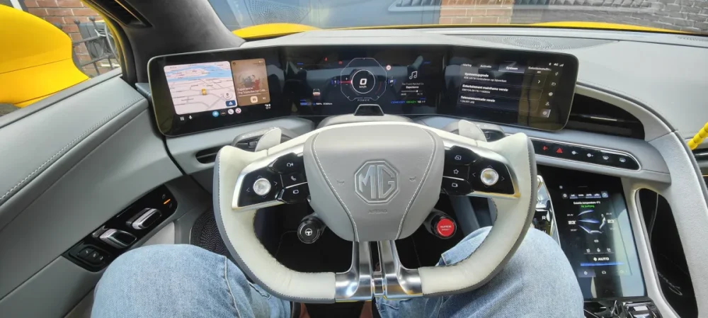 Il est vrai que la lisibilité de l’écran de gauche serait bien meilleure avec le volant yoke. Mais malheureusement le Cyberster n’est pas homologué en Europe avec ce type de volant. C’est dommage car le volant est disponible en Chine à un prix raisonnable. Et un Hollandais l’a installé, à ses risques et périls… -