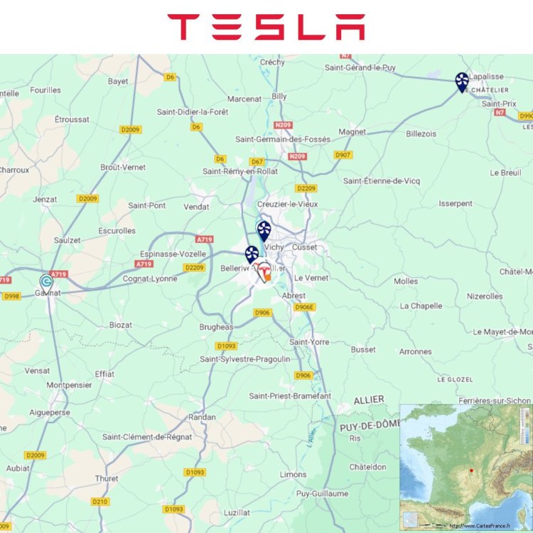 Construction d'une station Tesla à Bellerive-sur-Allier (E. Leclerc Vichy). Merci à Sébastien C. sur X pour l'info et la photo Comme d'habitude, retrouvez le lien vers ma carte : https://tinyurl.com/StationsVE Toute l'actu des stations de recharge sur le groupe FB : https://tinyurl.com/GroupeFacebookVE