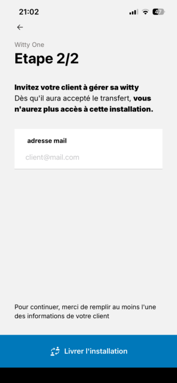 Bonjour, je viens de l’installer avec beaucoup d’espoir… Pas d’accès distant et l’application est en mode installateur avec une demande de transfert au client en bas qui ne fonctionne pas : je mets une adresse mail et rien. -