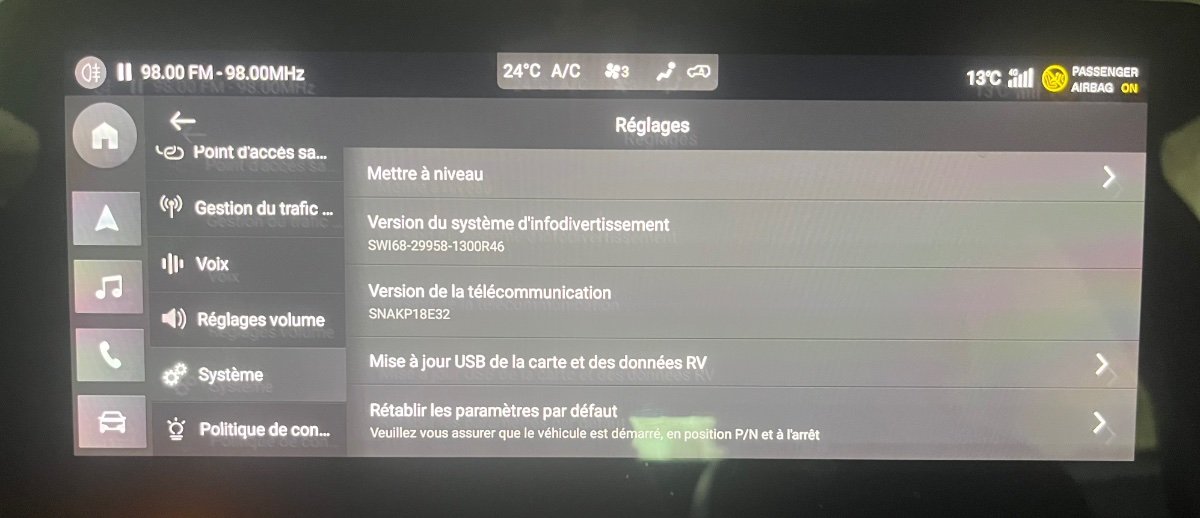 Bonjour, voilà ce que j’ai comme version, j’ai le sentiment que le technicien MG ne met pas le système à jour lors des visites annuelles et du coup pas la cartographie non plus … avez vous un avis svp ?