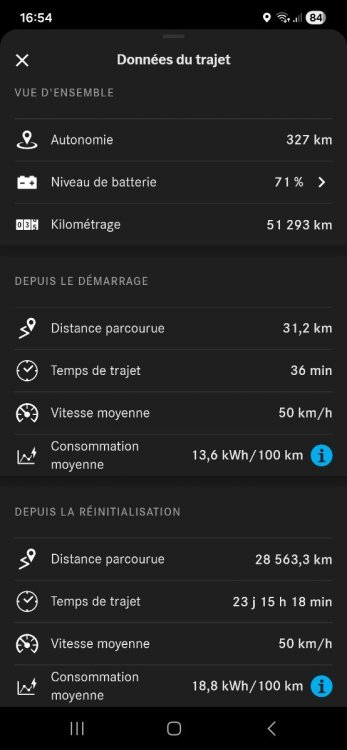 Je n'ai pas ton souci. Sur un peu plus de 1000 km, une vingtaine de trajets et après 5 recharges l'indicateur d'autonomie restante est toujours resté stable et cohérent avec le niveau de charge et le curseur sur le pictogramme de la batterie. Peut-être pas la même version de logiciel? -