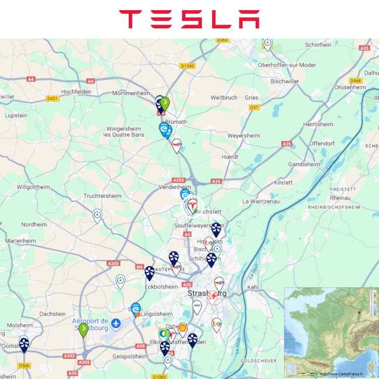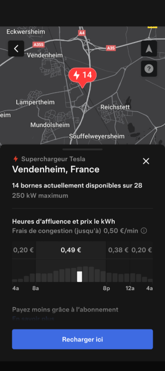 Agrandissement terminé d'une station Tesla à Vendenheim. Ajout de 16x 250kW CCS Soit 28x 250kW CCS Prix sans abonnement/non Tesla sur la capture Comme d'habitude, retrouvez le lien vers ma carte : https://tinyurl.com/StationsVE Toute l'actu des stations de recharge sur le groupe FB : https://tinyurl.com/GroupeFacebookVE