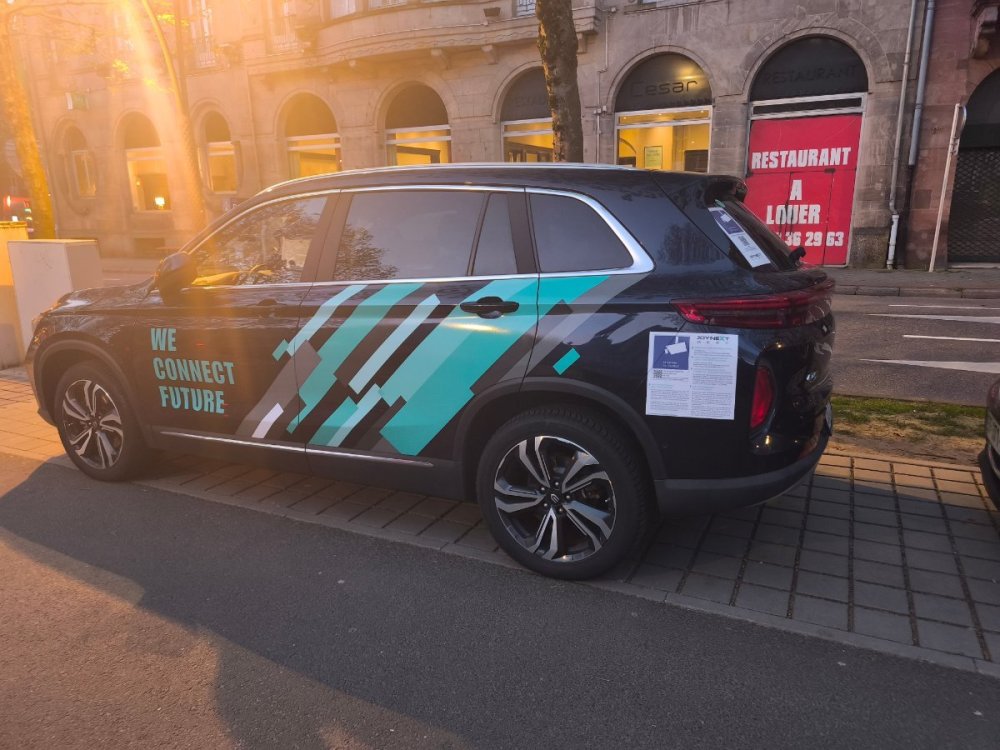 Toujours la même source, l'avenue Foch de metz. Plein d'instrumentation dans le véhicule au niveau du tableau de bord. Une Skywell ET5.