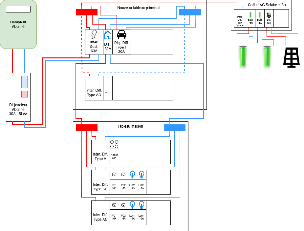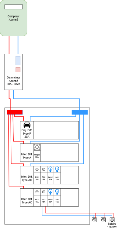 Voici le schéma du circuit existant. Les épaisseurs de fils donnent une idée mais ne respectent sans doute pas ce qui existe réellement : Et avec les modifications :- 2 réponses