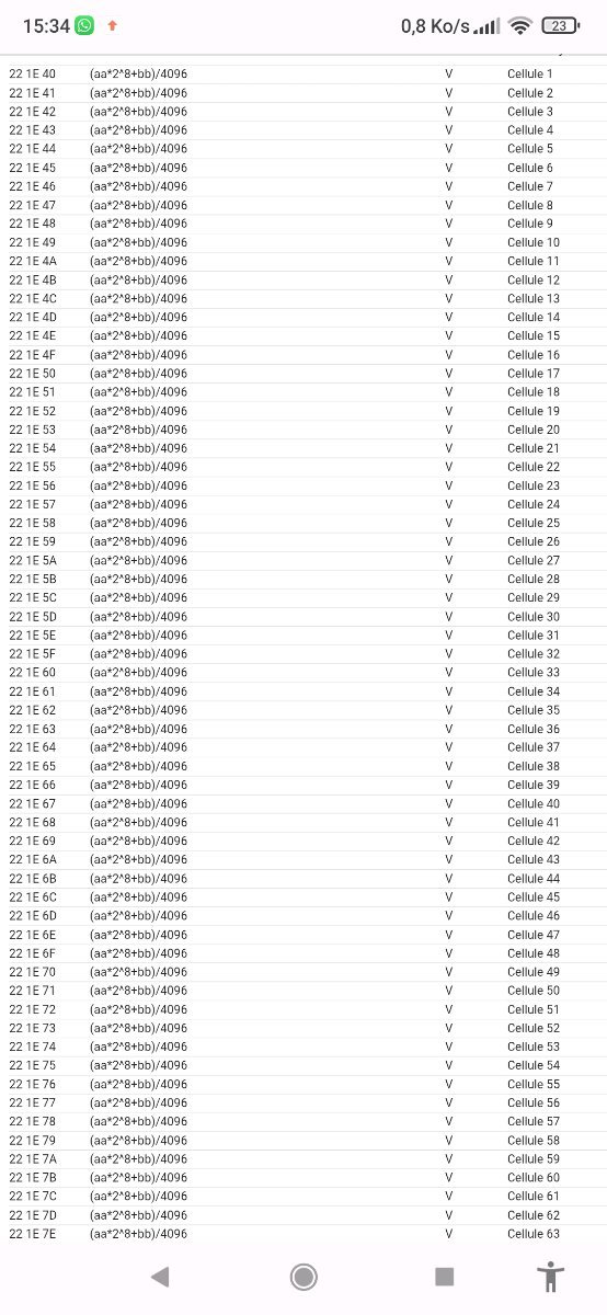 @400kV : Pour la tension des cellules, pour la paire#1 : Pour les paires #2 à #84, il faut juste changer la commande : Paire#2 : 221E41 jusqu'à Paire#84 : 221E93 -