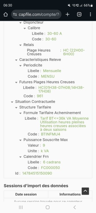 Effectivement, c'est une mine ce site (Capfile). Ma future plage d'heures creuses (à partir d'avril) : 01H30-07H00 et 14H30-17H00. Je ne sais que penser. D'un côté, la majorité des lessives et sèche linges sont faites en journée. Mais l'été de 14h à 18h, les panneaux compense largement ma consommation, même en télétravail. D'un autre côté, 5 heures suffisent pour charger les voitures et 2,5h de charge en plein après-midi, c'est pas mal aussi... La borne gère ce type de plages et la green'up est aussi connectés à un relais programmable (wifi). On voit que la conso suit les HC ! -