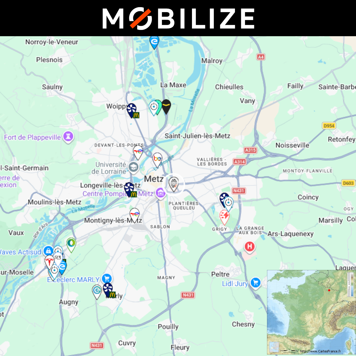 Ouverture d'une station Plug Inn Fast Charge à Metz (Renault). 4x 320kW CCS Comme d'habitude, retrouvez le lien vers ma carte : https://tinyurl.com/StationsVE Toute l'actu des stations de recharge sur le groupe FB : https://tinyurl.com/GroupeFacebookVE -