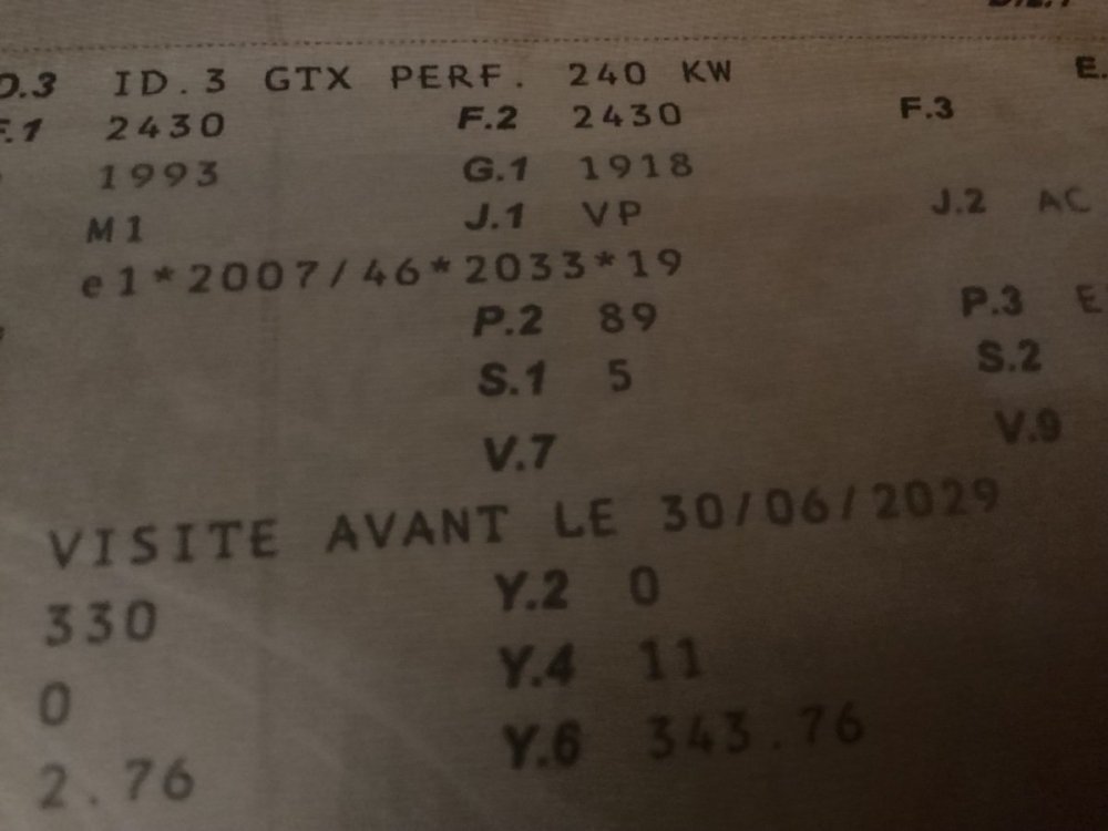 C’est marrant parce que le poids est légèrement différent entre mes deux GTX. Au dessus il s’agit de la première, équipée d’usine de l’attelage. La deuxième avec l’attelage ajouté après coup est plus légère sur la carte grise :