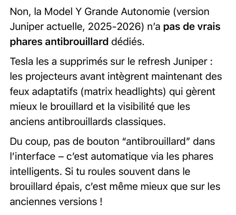Je viens de regarder dans le manuel. Aucune mention des deux antibrouillards. Je pense qu’il y en a plus depuis les feux matriciels. grok confirme leur disparition : -