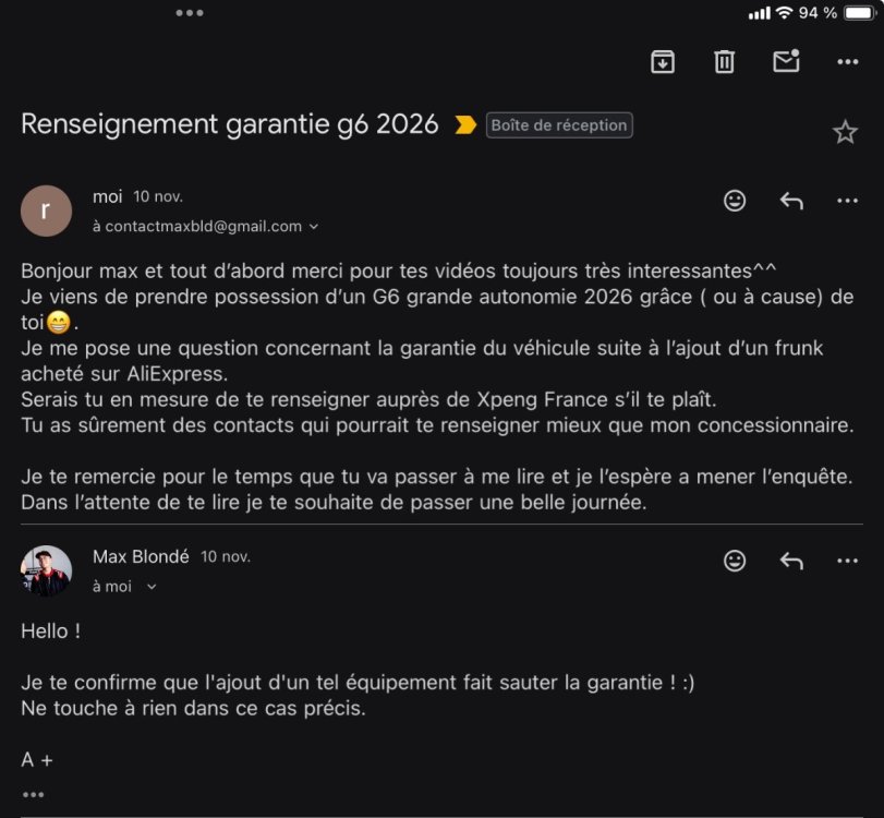 J’ai contacté et eu une réponse de Max bld un youtubeur qui es « ambassadeur » xpeng France concernant le frunk. Voici sa réponse…