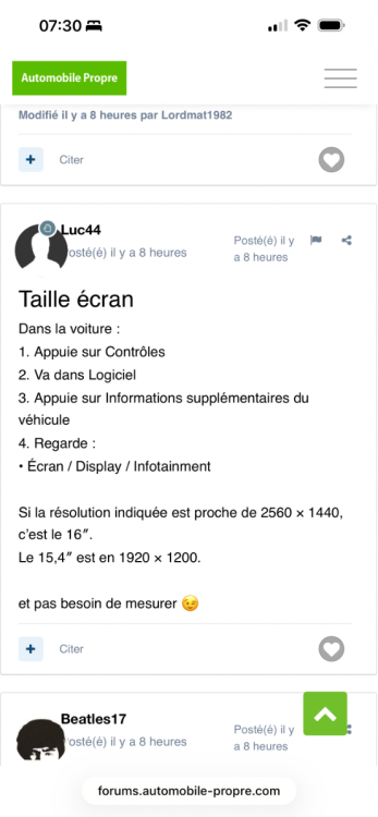 Ça ressemble à du 16" ça non ? Enfin le bord me semble fin par rapport à l'ancien que j'ai vu dans celle d'un collègue 🙈 Mais je ne suis pas spécialiste 😁 -