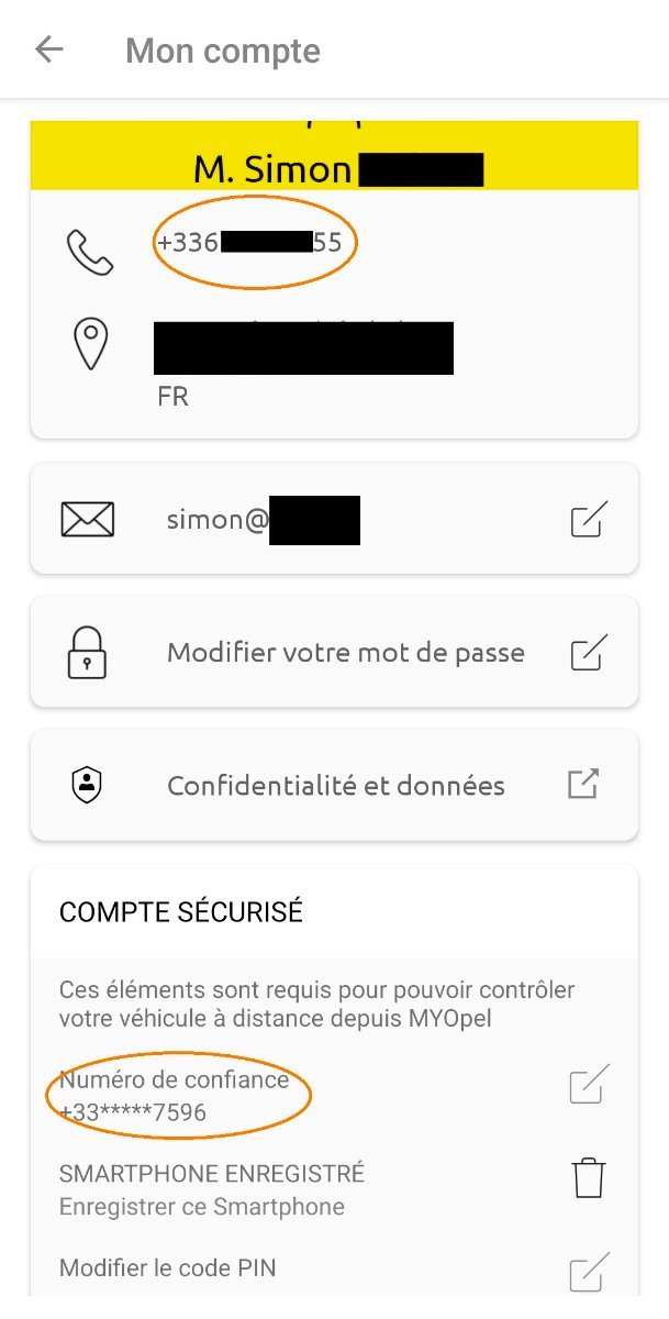 Oui enfin la voiture est bien sur mon compte Opel avec le nouveau numéro de téléphone ! S'ils offraient à minima que le code puisse être envoyé par mail... Bon là le DNS il est cassé... -